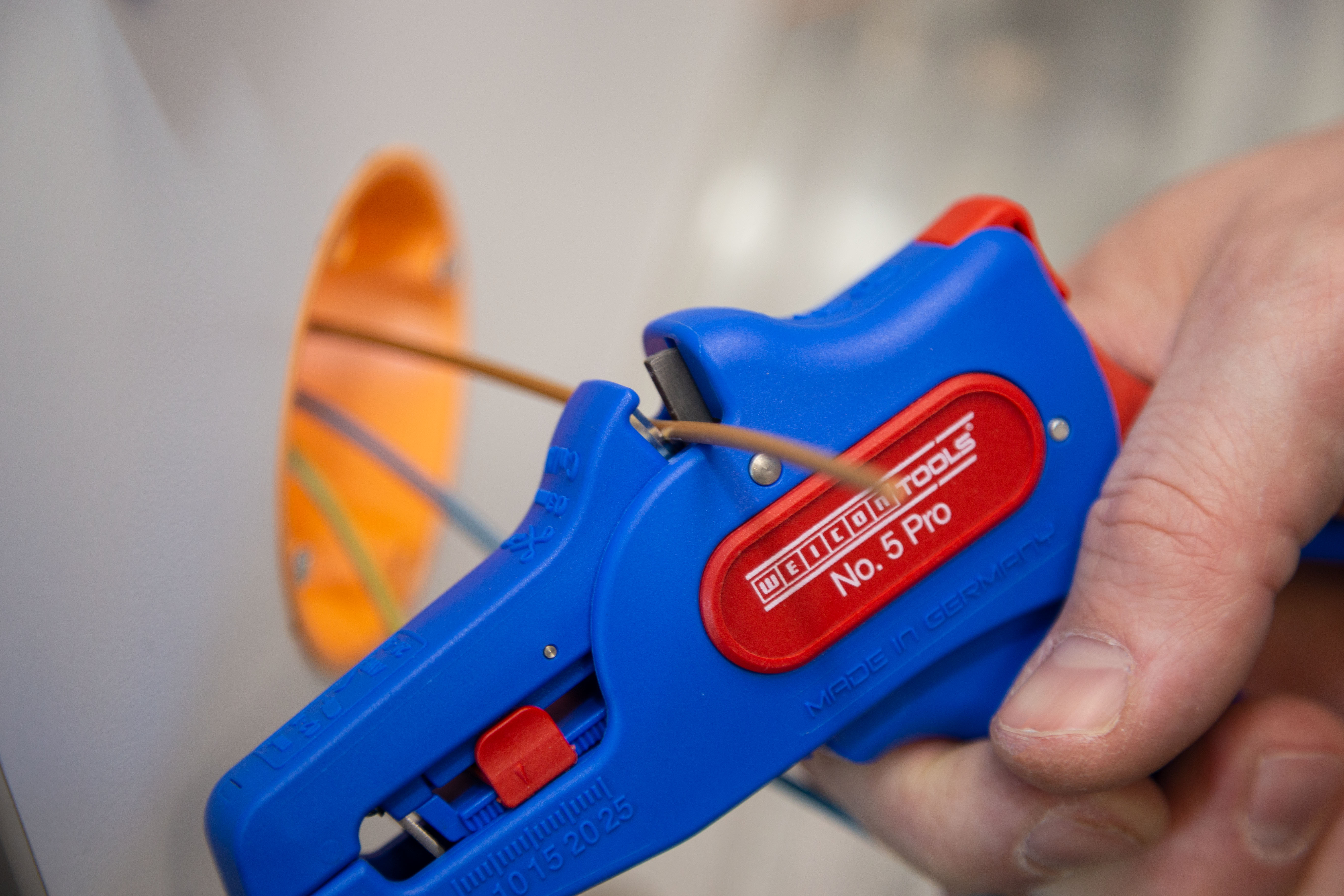 De klassieke WEICON TOOLS draadstripper nr. 5 is herzien en het nr. 5 Pro werd gelanceerd met een nieuwe werkruimte en een nieuw ontwerp. De tang heeft een groot werkbereik en kan daarom op veel verschillende gebieden worden gebruikt. De automatische tang wordt gebruikt voor het strippen van alle standaard flexibele en massieve geleiders van 0,2 tot 16 mm².