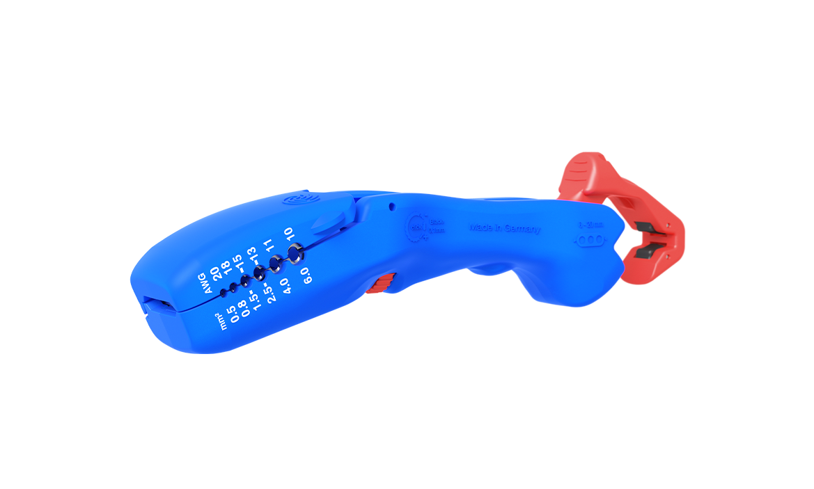 Ontmantelen en strippen van alle gangbare ronde kabels van 8-13 mm ø, haakblad en stripbereik zijn geïntegreerd. Snelle en eenvoudige longitudinale snede door geoptimaliseerde kabelgeleiding in de behuizing. Geïntegreerd stripbereik voor alle flexibele en massieve geleiders met de doorsneden 0,5 mm², 0,75 mm², 1,5 mm², 2,5 mm², 4,0 mm² en 6,0 mm². Intrekbaar haakmes, in elke positie stevig vergrendelbaar en gemakkelijk te vervangen.