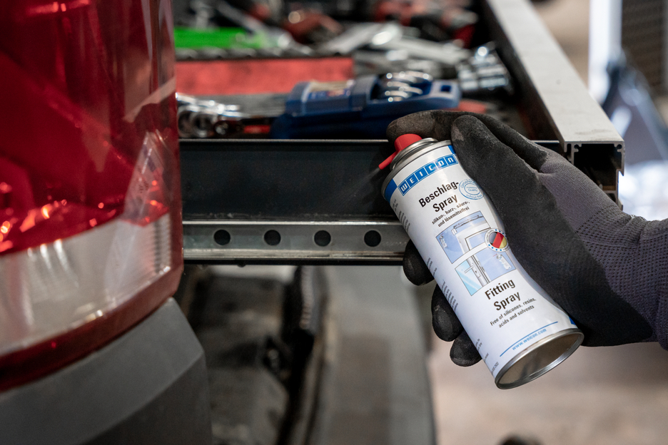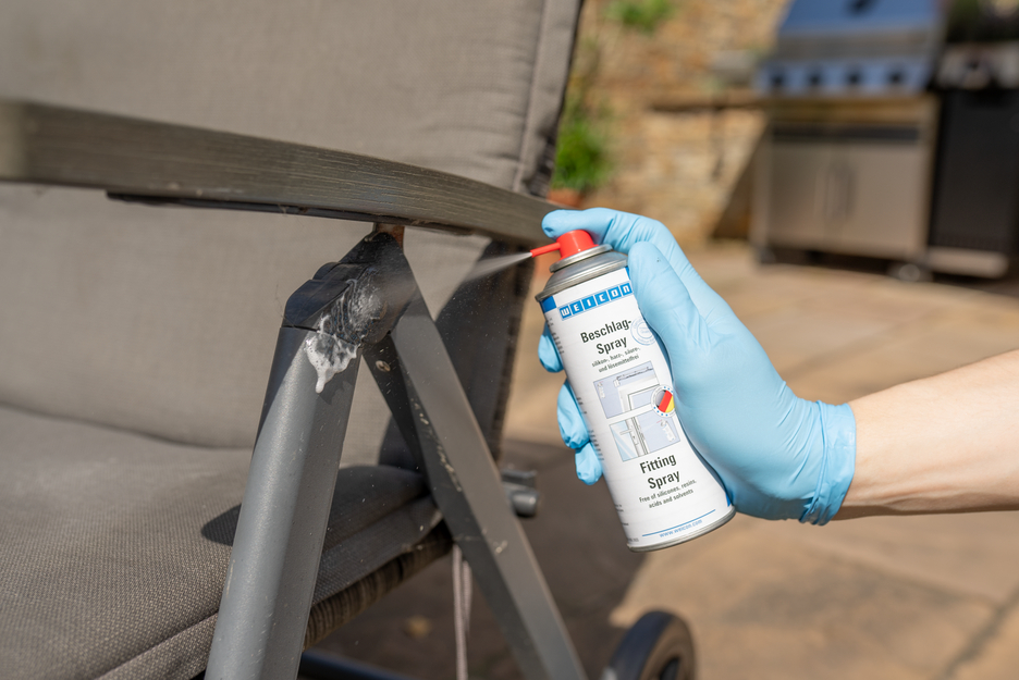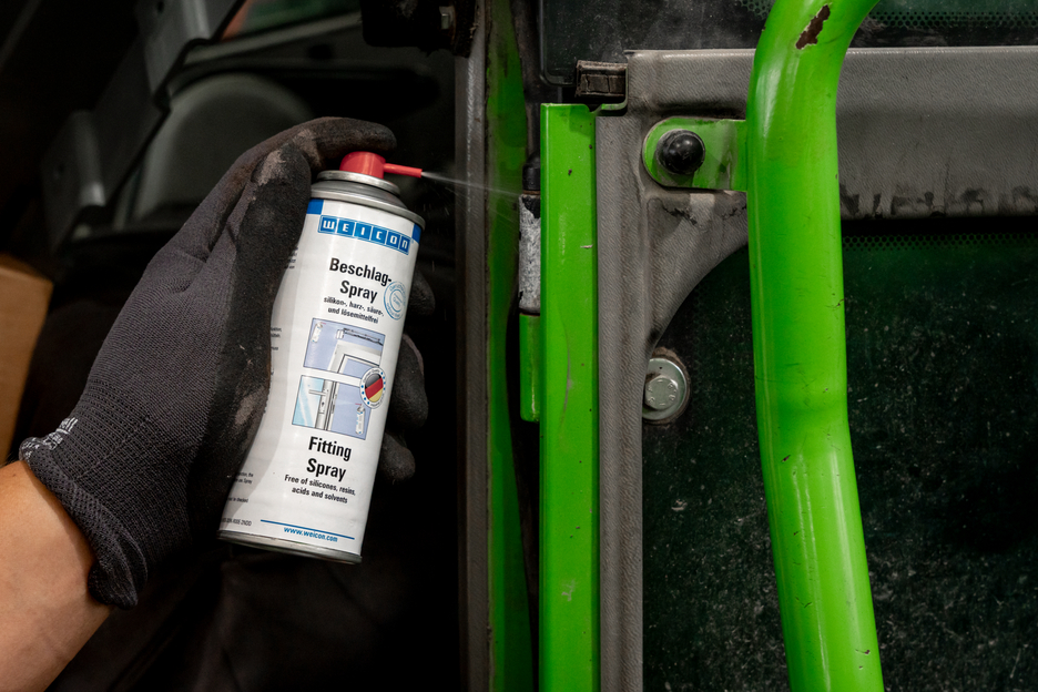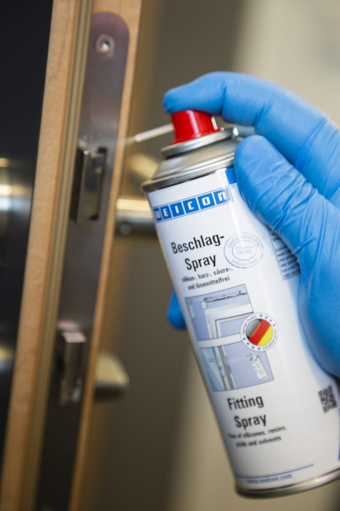 WEICON Beslagspray is een sterk hechtend onderthouds- en verzorgingsmiddel dat vrij is van siliconen, hars, zuren en oplosmiddelen. De spray heeft bijzondere kruipende en waterafstotende eigenschappen, vermindert wrijving en slijtage en verhelpt piepende geluiden. WEICON Beslagspray is weerbestendig, beschermt tegen corrosie en maakt vuil los Het middel dient voor smering, verzorging en onderhoud van beslagen op ramen, deuren, poorten en garages, draaikiep- en schaarbeslagen en van scharnieren en sloten.