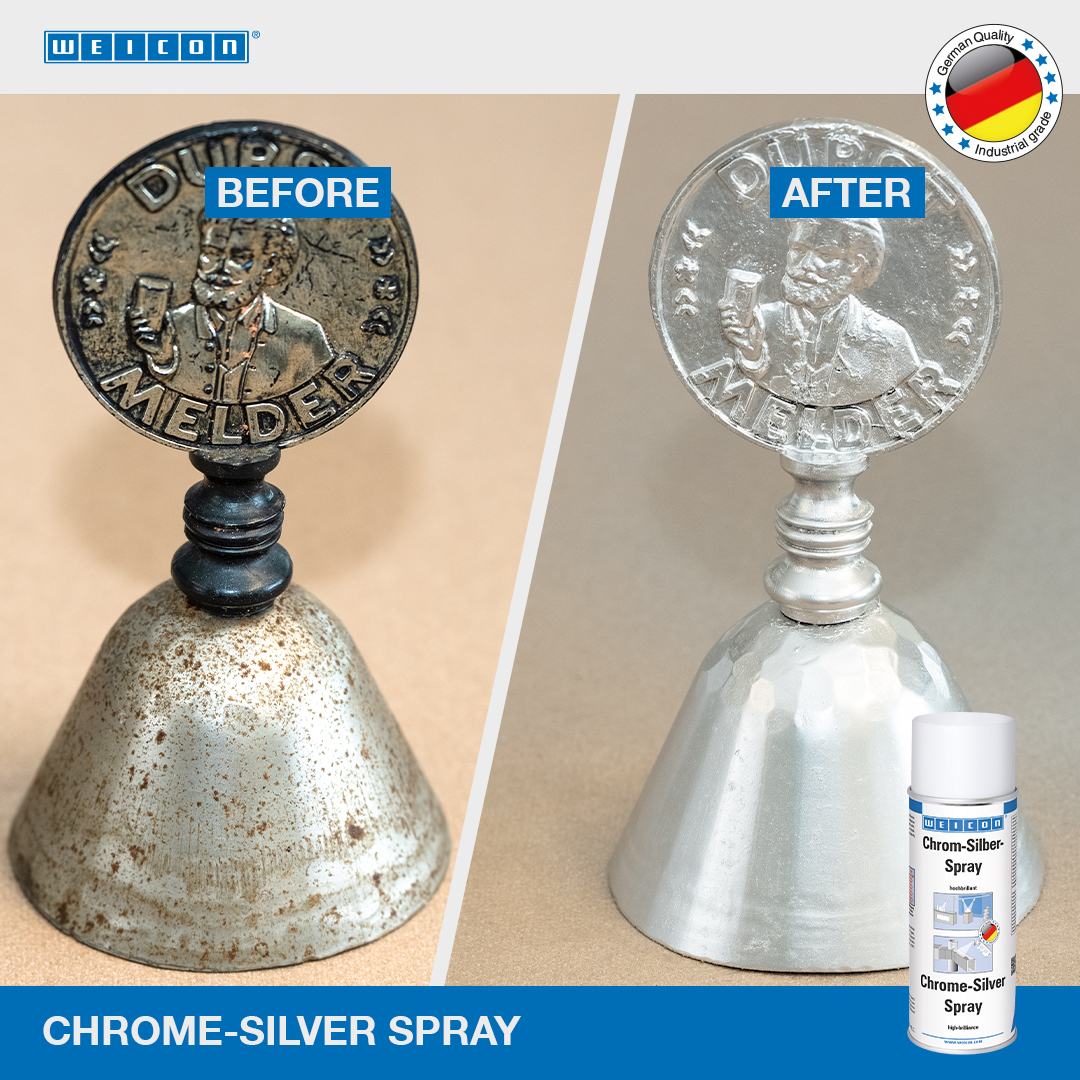 WEICON Chroom-Zilver Spray is een hoogbrilliante oppervlakkencoating. Door de speciale samenstelling en de hoge zuiverheid van de metaalpigmenten wordt een hoge glansgraad bereikt. Chroom-Zilver Spray kan gebruikt worden voor prototypen en monsters, reflecties (bijv. Reflectoren), standbouw op beurzen en tentoonstellingen, decoratieve doeleinden en voor optische opwaardering van verschillende materialen.