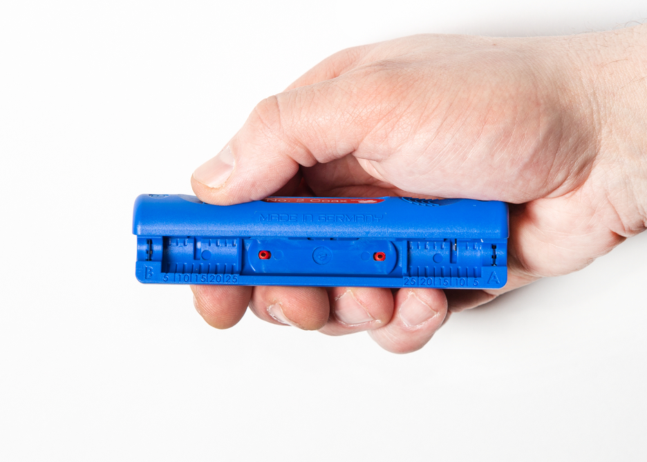 Bereik 4,8 - 7,5 mm Ø Instelling van de snijdiepte is niet nodig Ook geschikt voor flexibele kabels Lengtemaat (0 - 17 mm) in behuizing geïntegreerd Trapsgewijs strippen van alle gangbare coax-kabels.
