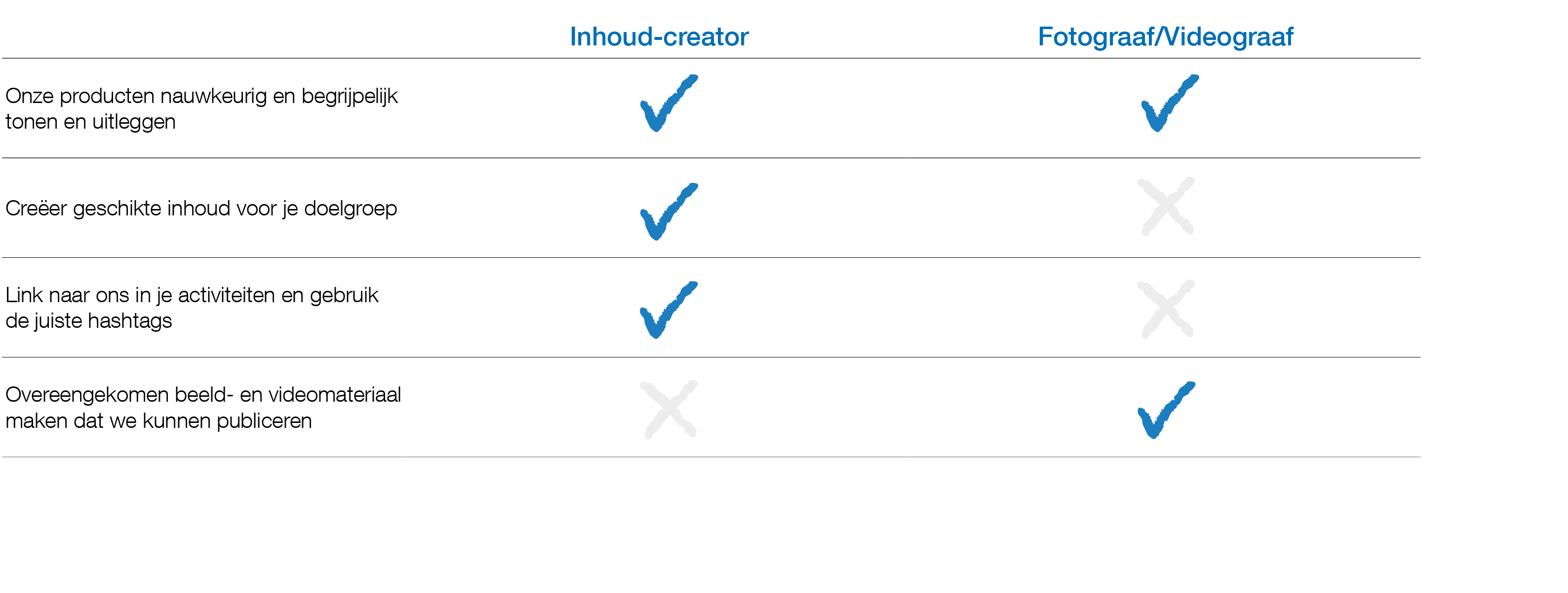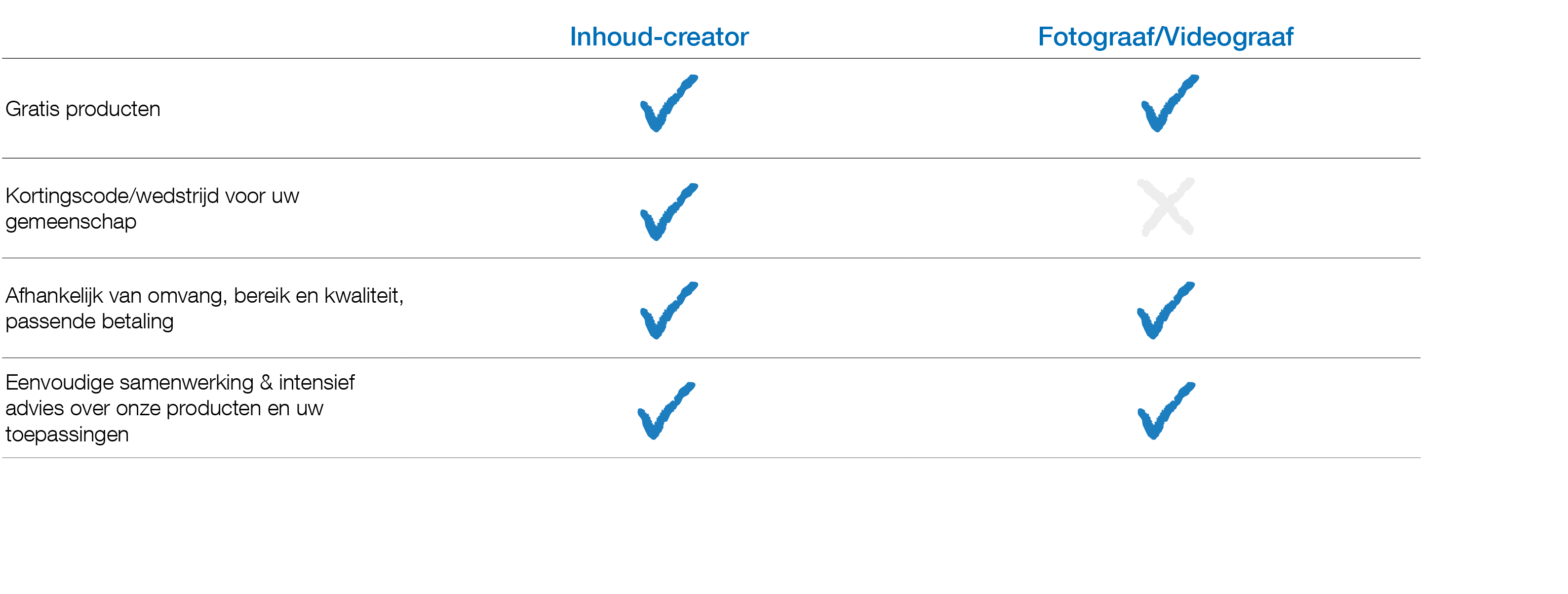 We zijn altijd op zoek naar samenwerkingspartners die onze producten in hun projecten gebruiken en deze presenteren of aantrekkelijke content creëren die wij kunnen gebruiken. Of het nu gaat om elektrische installatie, in de werkplaats, bij camperverbouwingen of in de tuin, we hebben zeker een product in ons portfolio dat je helpt om je project succesvol uit te voeren. Ontdek of je bij ons past als content creator of fotograaf/videograaf. Als je deel wilt uitmaken van ons creatieve team, vul dan onderstaand formulier in en wie weet maak jij binnenkort deel uit van ons team!