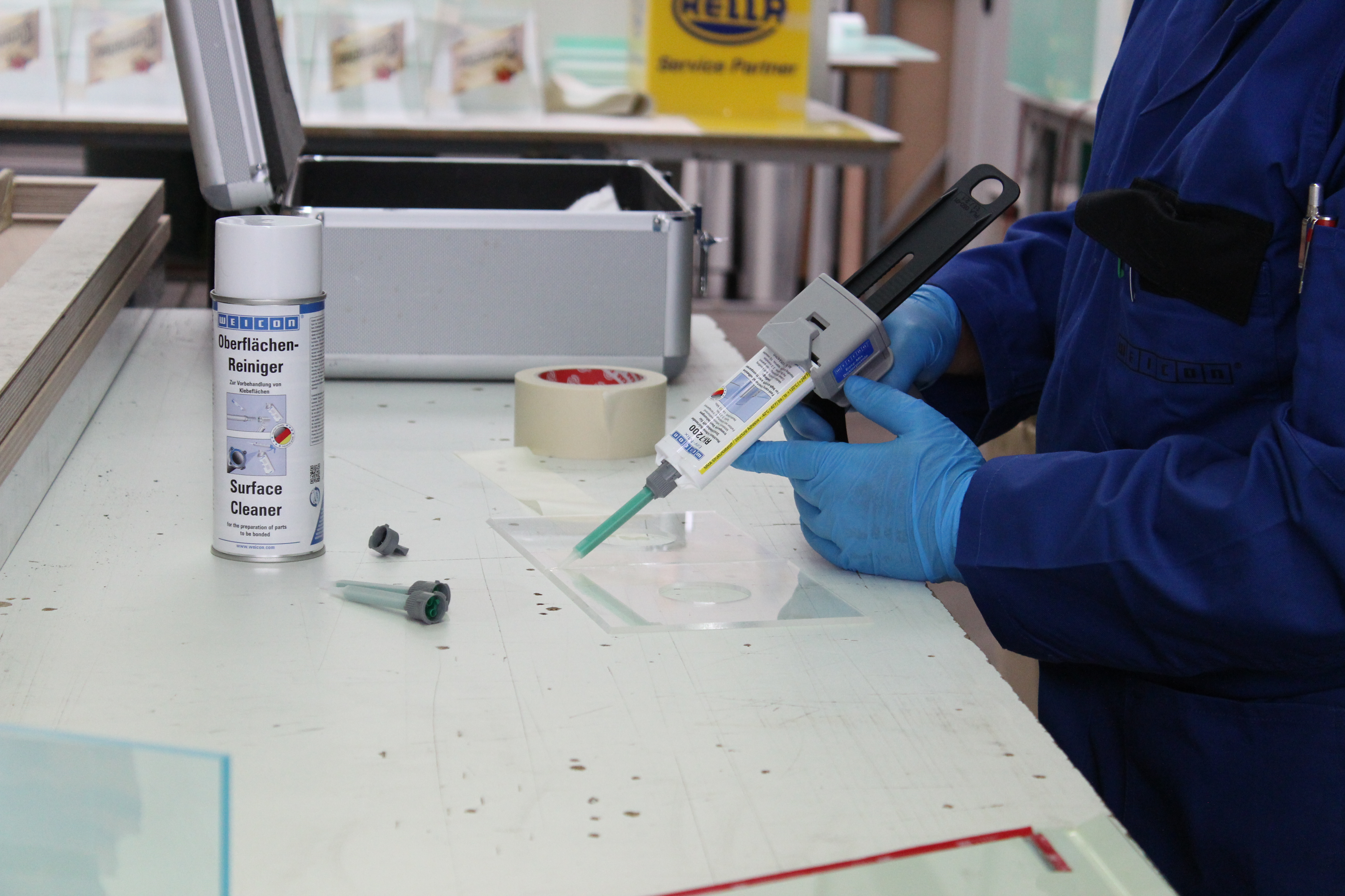 WEICON Easy-Mix RK-7200 is een sterke, snel uithardende, oplosmiddelvrije structurele lijm op basis van MMA (methylmethacrylaat) met een zeer goede hechting op een breed scala aan materialen. Door de transparante uitharding is het bijzonder geschikt voor het verlijmen van bijvoorbeeld kunststof en glas. WEICON Easy-Mix RK-7200 is ook geschikt voor structurele verlijmingen waarbij een gekleurde lijmverbinding de algehele optische indruk van het onderdeel zou verstoren. Zo kunnen transparante kunststoffen, zoals plexiglas en andere materialen, schoon en aantrekkelijk met en tussen elkaar worden gelijmd met een hoge sterkte. Het Easy-Mix D 50 doseerpistool is nodig voor het verwerken van Easy-Mix producten in verpakkingen van 50 ml.