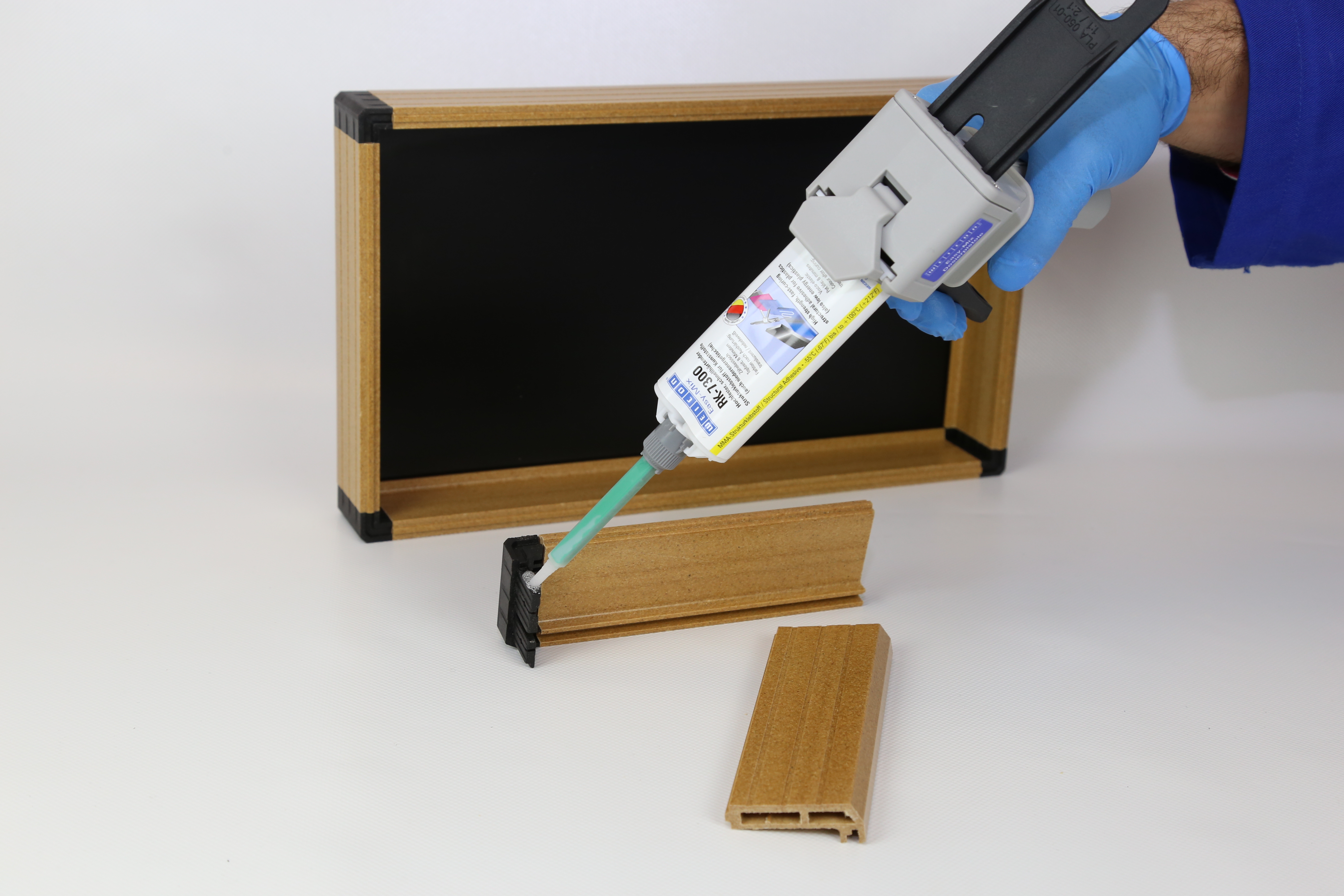 WEICON Easy-Mix RK-7300 is een snel uithardende, oplosmiddelvrije constructie- en constructielijm op basis van MMA (methylmethacrylaat). De lijm hecht zeer goed op een breed scala aan materialen en vertoont een hoge sterkteopbouw. Hij kan universeel worden gebruikt voor statische en dynamische belastingen. Lijmen met hoge sterkte is ook mogelijk met energiezuinige kunststoffen zoals PE of PP. De viscoplastische instelling maakt ook materiaalcombinaties met verschillende uitzettingscoëfficiënten mogelijk, zoals kunststof/aluminium of staal. Speciale vulstoffen (glasparels) zorgen voor een constante lijmspleet van 0,25 mm. Maximale spleetoverbrugging: 1 mm. Het Easy-Mix D 50 doseerpistool is nodig voor het verwerken van Easy-Mix producten in 50 ml verpakkingen.