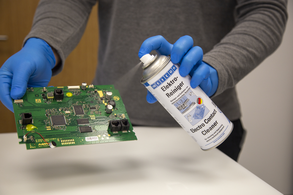 WEICON Electro-Reiniger is een speciale reiniger voor het snelle en effectieve reinigen en ontvetten van allerlei vervuilde of gecorrodeerde contacten. Electro-Reiniger is speciaal ontwikkeld voor de reiniging van electronische en mechanische onderdelen. De speciale formule van hoog zuivere oplosmiddelen verwijderd: oxide- en sulfidelagen, verbrandingsresten en hars of roetachtige stofafzettingen. Het verminderd spanningsverlies en verhoogd de elektrische geleiding. Vuil dat kruipstromen kan veroorzaken wordt verwijderd. WEICON Electroreiniger kan worden gebruikt op elektrotechnische of mechanische componenten, zoals elektrische machines, meetinstrumenten, gereedschappen, weegschalen, schakelaars en sensoren of elektrische stekkerverbindingen, contacten, relais en schakelapparatuur.