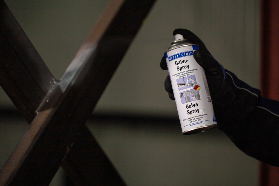 WEICON Galva Spray dient als permanente beschermende laag voor alle metaaloppervlakken. Het beschermt metalen tegen roest en corrosie, is sneldrogend en goed hechtend. De spray is zowel zoet- als zoutwaterbestendig en temperatuursbestendig tot ca. +300 °C (+572 °F). In de zoutsproeitest volgens DIN EN ISO 9227 lieten metalen onderdelen die met Galva-Spray behandeld waren, zelfs na meer dan 450 uur geen enkele corrosie zien. De spray dient voor het herstellen van verzinkte oppervlakken an gelijke tint, als hoogwaardige roestbeschermingsgrondlaag, bijvoorbeeld bij verven van carrosseriën, als coating van las- en boorplekken en als geleidende tussenlaag bij puntlassen.