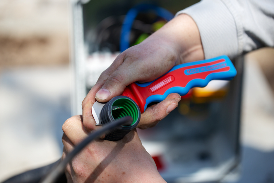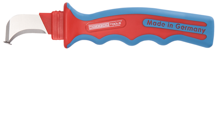 Snel aansnijden van meervoudig geïsoleerde kabels Bescherming van de binnengeleider door schoenvormige mespunt Goede krachtoverdracht door geoptimaliseerde handgreep