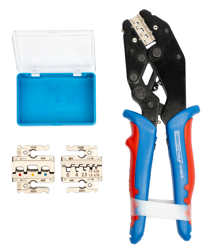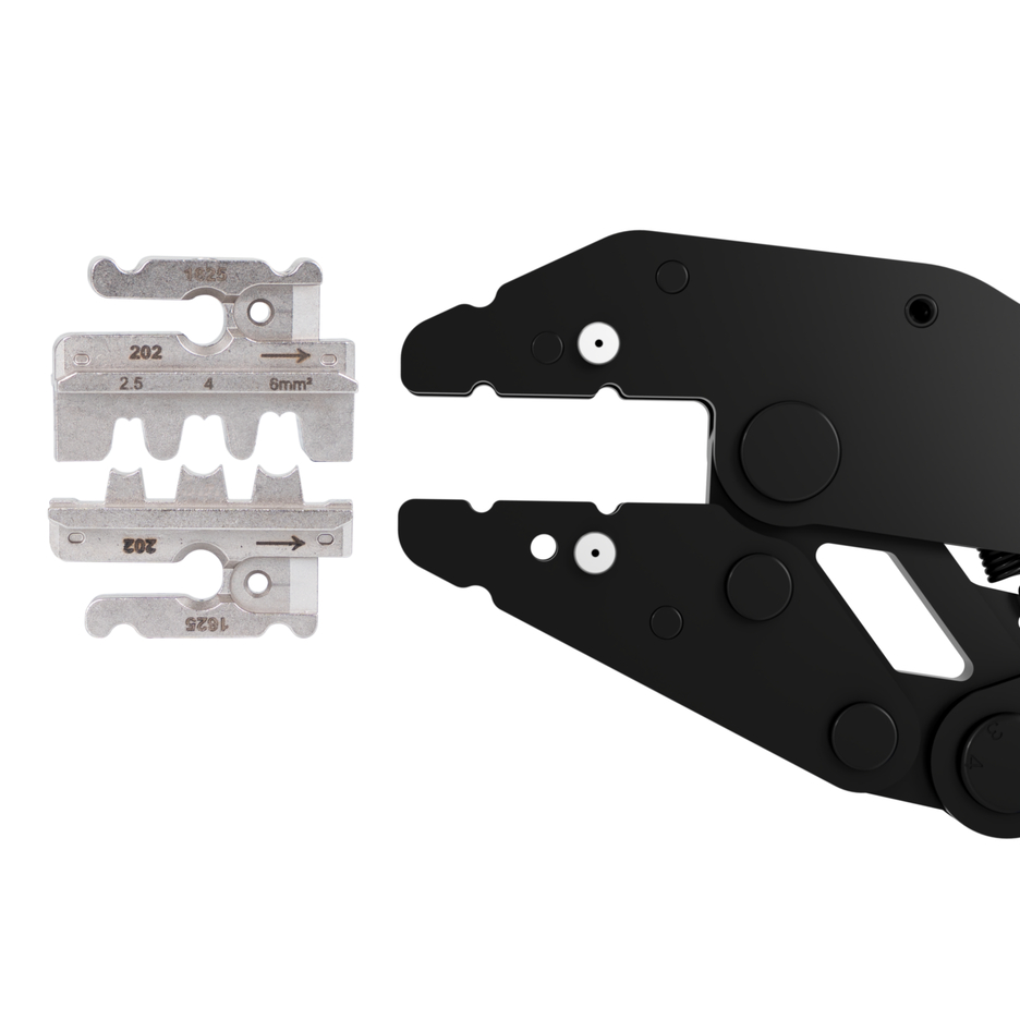 nauwkeurig werken dankzij ratelmechanisme met gedwongen vergrendeling I Procesveilige crimping – tang opent pas na het crimpingproces I Noodontgrendeling in het handvat (in geval van verkeerd gebruik) I Set van 3: modules voor MC4-stekkers/geïsoleerde adereindhulzen/geïsoleerde kabelschoenen I modulair Multi Change-systeem voor snel wisselen van modules I excentrische instelling voor het afstellen van de krimpkracht I optimale grip door 2-componentenhandgrepen