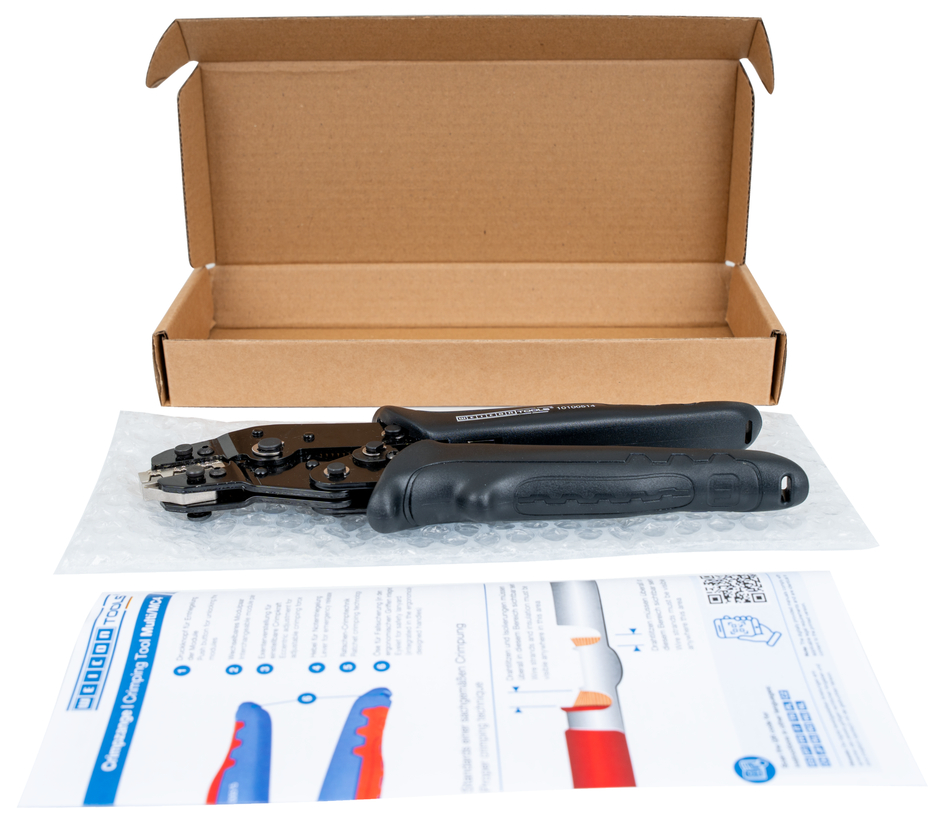 nauwkeurig werken dankzij ratelmechanisme met gedwongen vergrendeling I Procesveilige crimping – tang opent pas na het crimpingproces I Noodontgrendeling in het handvat (in geval van verkeerd gebruik) I Speciaal voor MC4-stekkers 2,5, 4 & 6 mm² (AWG 14-10) I Multi Change-systeem voor snel wisselen van modules I excentrische instelling voor nauwkeurige afstelling van de krimpkracht I optimale grip door 2-componentenhandgrepen