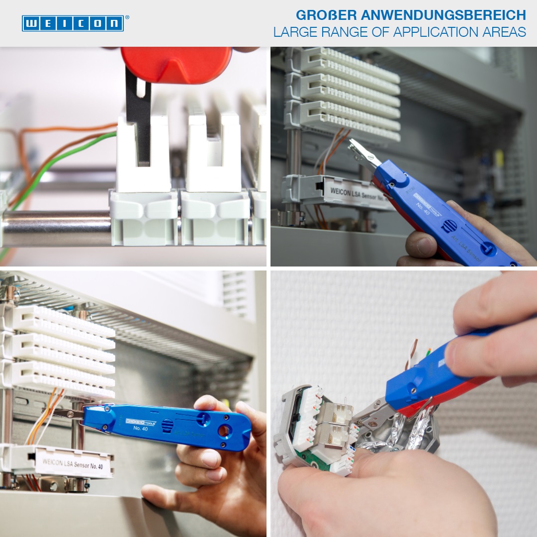 voor het soldeer-, schroef en afstripvrije aanbrengen en tegelijkertijd op lengte knippen van draden aan LSA-profielen.