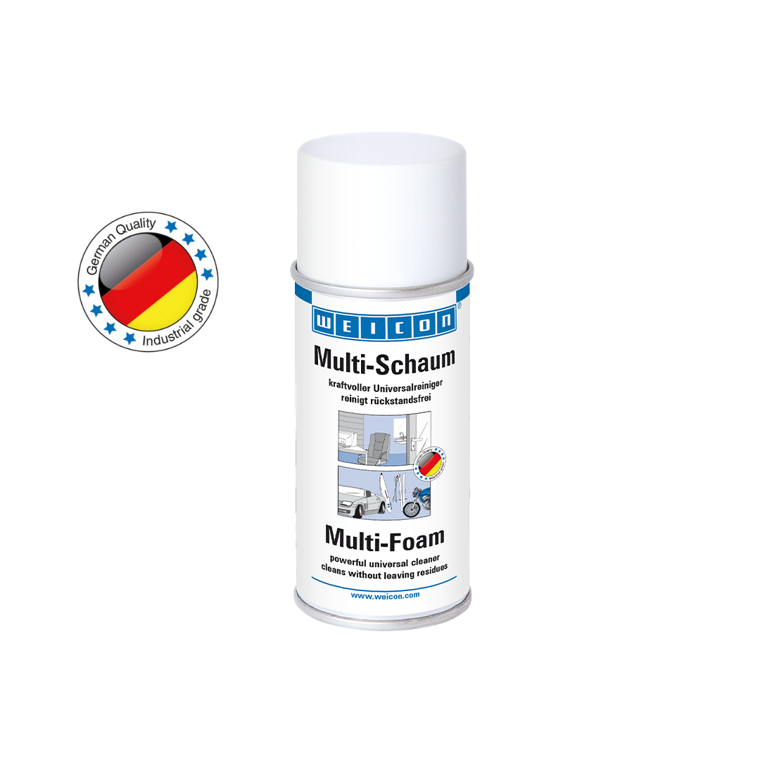 WEICON Multi-Schuim is een krachtige universele reiniger voor een residuvrije reiniging, fosfaat- en formaldehydevrij en vrij van corrosieve en bijtende stoffen. Multi-Schuim reinigt verschillende oppervlakken zoals: metaal, kunststof, glas, keramiek of gelakeerde en gecoate oppervlakken. WEICON Multi-Schuim is universeel toepasbaar en kan zowel in de industrie, handwerk als thuis worden gebruikt.