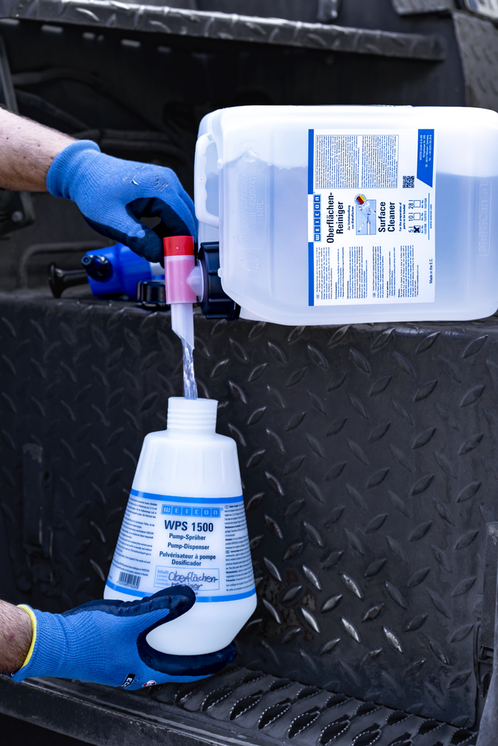 WEICON Oppervlakkenreiniger wordt gebruikt voor het reinigen en ontvetten van oppervlakken die met WEICON lijm- en afdichtingsmiddelen verlijmt of afgedicht gaan worden. Oppervlakkenreiniger kan op materialen zoals: metaal, glas, keramiek, en de meeste kunststoffen worden gebruikt. Het kan bijvoorbeeld gebruikt worden voor het reinigen en ontvetten van machine-onderdelen tijdens onderhoudswerkzaamheden.