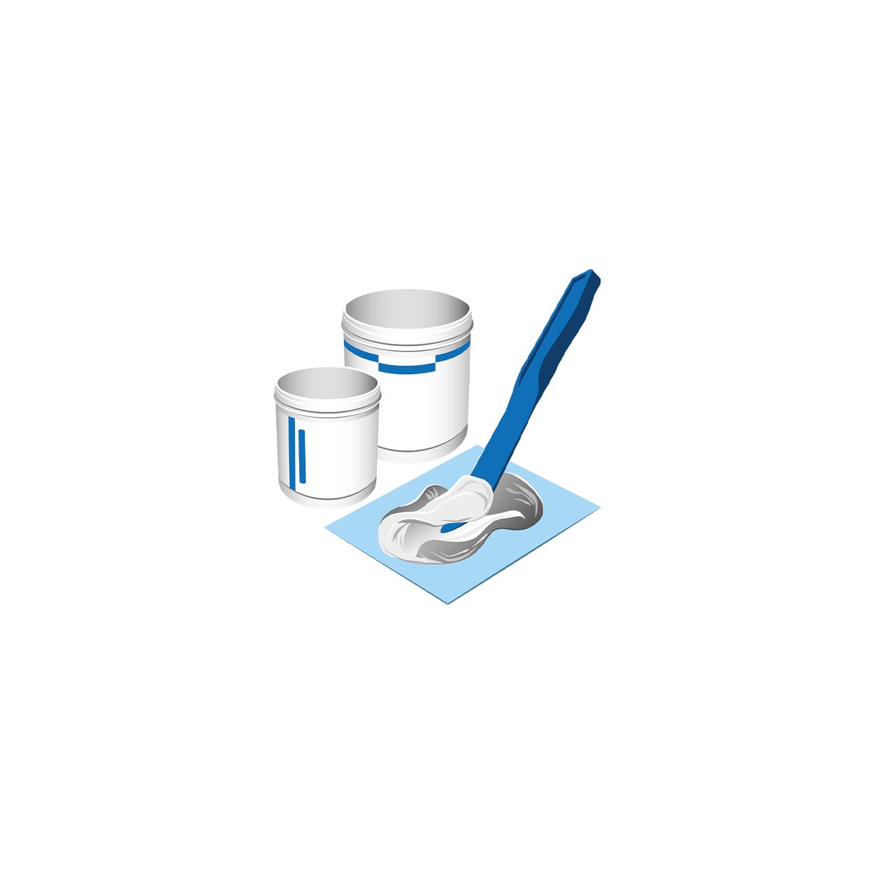 Het epoxyharssysteem bevat afhankelijk van het type nog een andere component, zoals staal- of aluminiumpoeder of minerale vulstoffen.