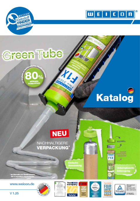 The foil bag is pressed flat during use. Compared to conventional cartridges, this noticeably cuts down on waste volume – and in turn, packaging waste. The lid and tip with leftover material can be disposed of in general waste or, after removing the cured product residues, recycled through the plastic recycling system. The Green Tube reduces waste by 393 kg per 10,000 cartridges compared to conventional plastic ones.