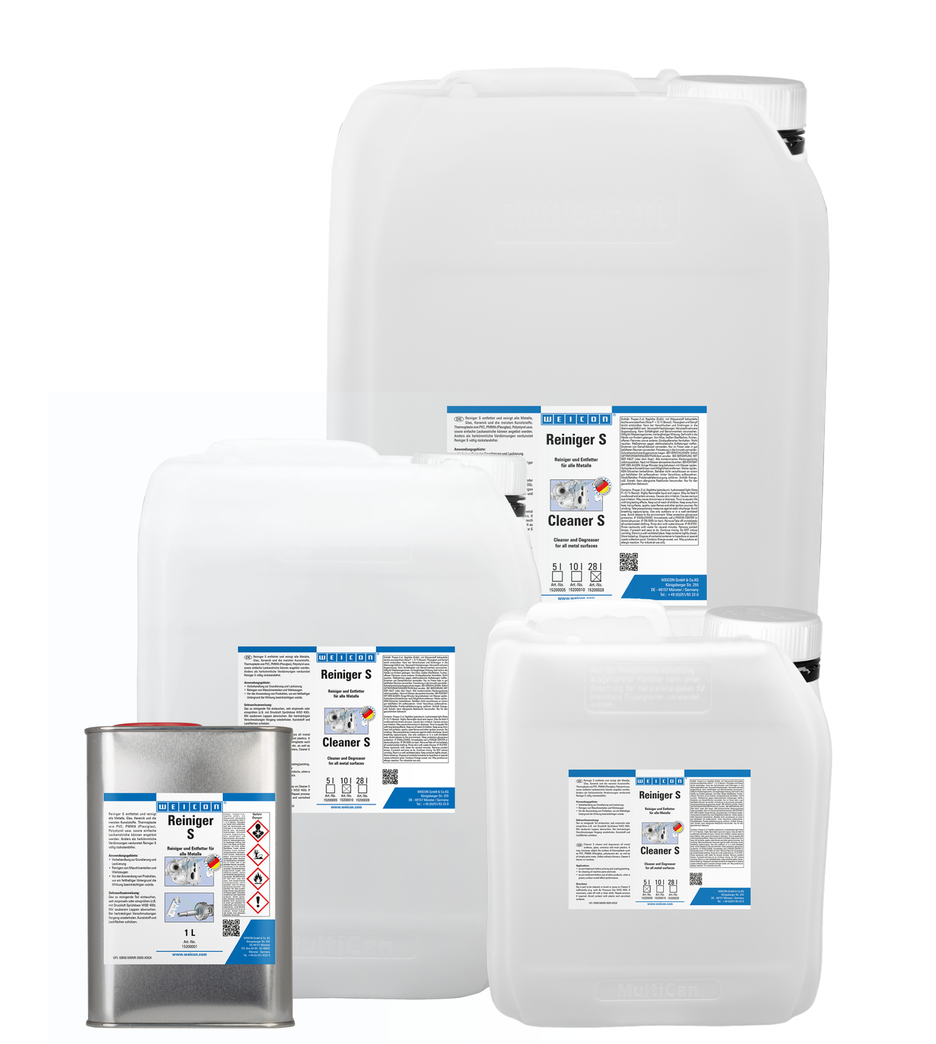 WEICON Reinigerspray S verwijderd oliën en vettige vervuiling van alle soorten metaal, en tevens van keramiek, glas en de meeste kunststoffen. Het kan echter het oppervlak van thermoplasten zoals: PVC, Plexiglas, Polystyrol en verflagen aantasten. WEICON Reiniger S verdampt snel en volledig residuvrij. Het kan kan gebruikt worden voor het reinigen en ontvetten vóór het primeren en lakken, voor het reinigen van machine onderdelen of als voorbehandeling van andere WEICON producten, waar een vettige ondergrond de werking nadelig kan beïnvloeden, bijvoorbeeld bij verlijmingen.