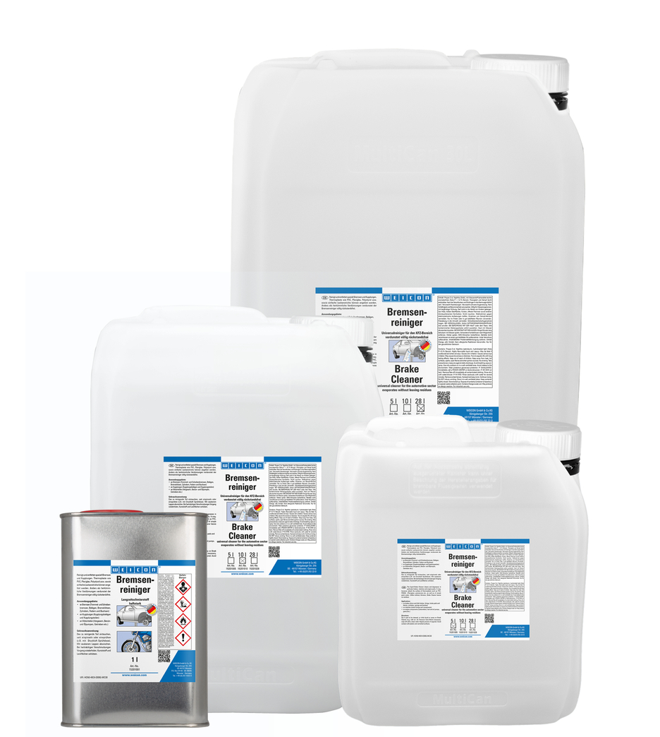 WEICON Remmenreiniger is een universele reiniger speciaal voor de automotive branche die reinigt, ontvet en residuvrij oplost. Remmenreiniger ontvet en reinigt snel en moeiteloos metalen, glas en vele kunststoffen en verwijderd olie en vethoudende vervuiling en residuen. WEICON Remmenreiniger kan op remmen (trommel- en schijfremmen, remvoeringen, remblokken, cilinders, veren en bussen), op koppelingen (koppelingsvoeringen en componenten) of op motoronderdelen (carburateurs, brandstof- en oliepompen, transmissies, etc.) worden gebruikt.
