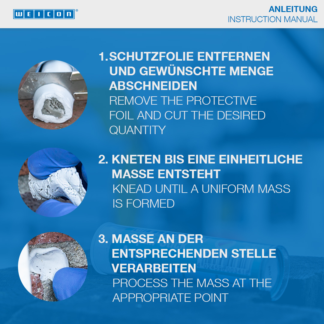 De allrounder voor snelle, langdurige, elastische en niet krimpende reparaties en herstelwerkzaamheden op zo goed als alle oppervlakken. Repair-Stick Multi vult en sluit scheuren, gaten, defecte plekken, lekkages en openingen. Het kan op metaal, hout, steen, glas, kunststof en vele andere materialen worden toegepast. Door zijn universeel toepasbaarheid is WEICON Repair-Stick Multi geschikt voor zowel handwerk en DYI-toepassingen als voor de meest uiteenlopende industriële gebieden.