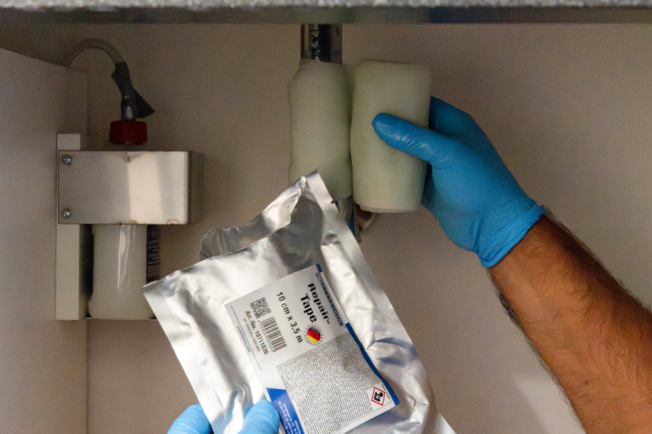 Flexibele, bestendige en zelfdichtende reparatietape van glasvezelversterkte kunststof voor snelle noodreparaties binnen of buiten. De tape is geïmpregneerd met een speciale hars en wordt geactiveerd door contact met water. De tape kan zeer snel en gemakkelijk worden aangebracht en heeft zeer sterke kleefeigenschappen op bijna alle oppervlakken. Na slechts 30 minuten is de tape volledig uitgehard en klaar voor gebruik. Na uitharding kan de tape worden geschuurd en overschilderd. De tape heeft een hoge chemische bestendigheid en temperatuurbestendigheid van -50 °C (-58 °F) tot +150 °C (302 °F) voor korte perioden. De tape kan zonder extra gereedschap worden aangebracht en wordt gebruikt voor betrouwbare en duurzame reparaties in de industrie, de handel, het huishouden, op de camping en bij doe-het-zelf toepassingen.
