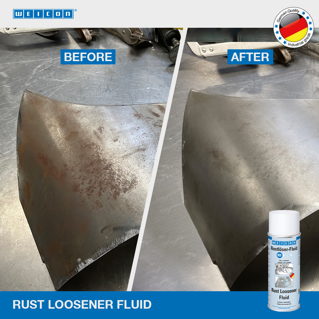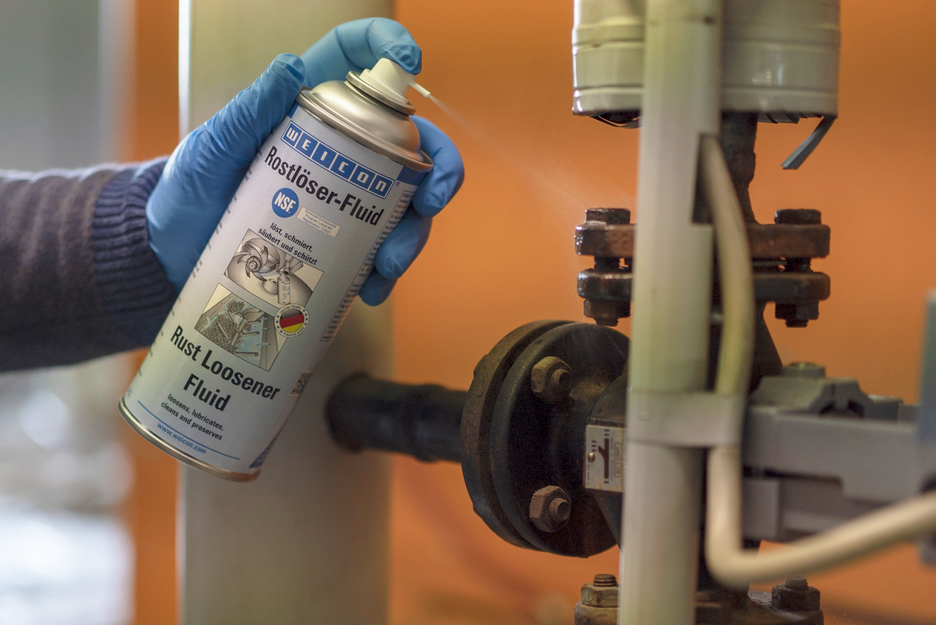 WEICON Roestoplosser-Fluid is fysiologisch onschadelijk en beschikt over een NSF goedkeuring voor gebruik in de levensmiddelenindustrie. Daardoor kan het product gebruikt worden in de voedingsmiddelen- en drankenindustrie en in de farmaceutische- en cosmetische industrie. Roestoplosser-Fluid maakt vastgeroeste en geoxideerde schroefverbindingen, bouten, koppelingen, scharnieren alsmede trage mechanica van onderdelen los. Door de zeer goede kruipeigenschappen dringt WEICON Roestoplosser-Fluid door tot in de kleinste tussenruimtes Het garandeert het functioneren van mechanische onderdelen en electrische contacten. De spray beschermt langdurig tegen corrosie en oxidatie. Het reinigt en verzorgt metalen oppervlakken, mechanische onderdelen en electrische installaties. Door de speciale receptuur en de daaruit resulterende NSF goedkeuring, draagt Roestoplosser-Fluid bij aan de verbetering van de veiligheid op de werkplek en de gezondheidsbescherming.