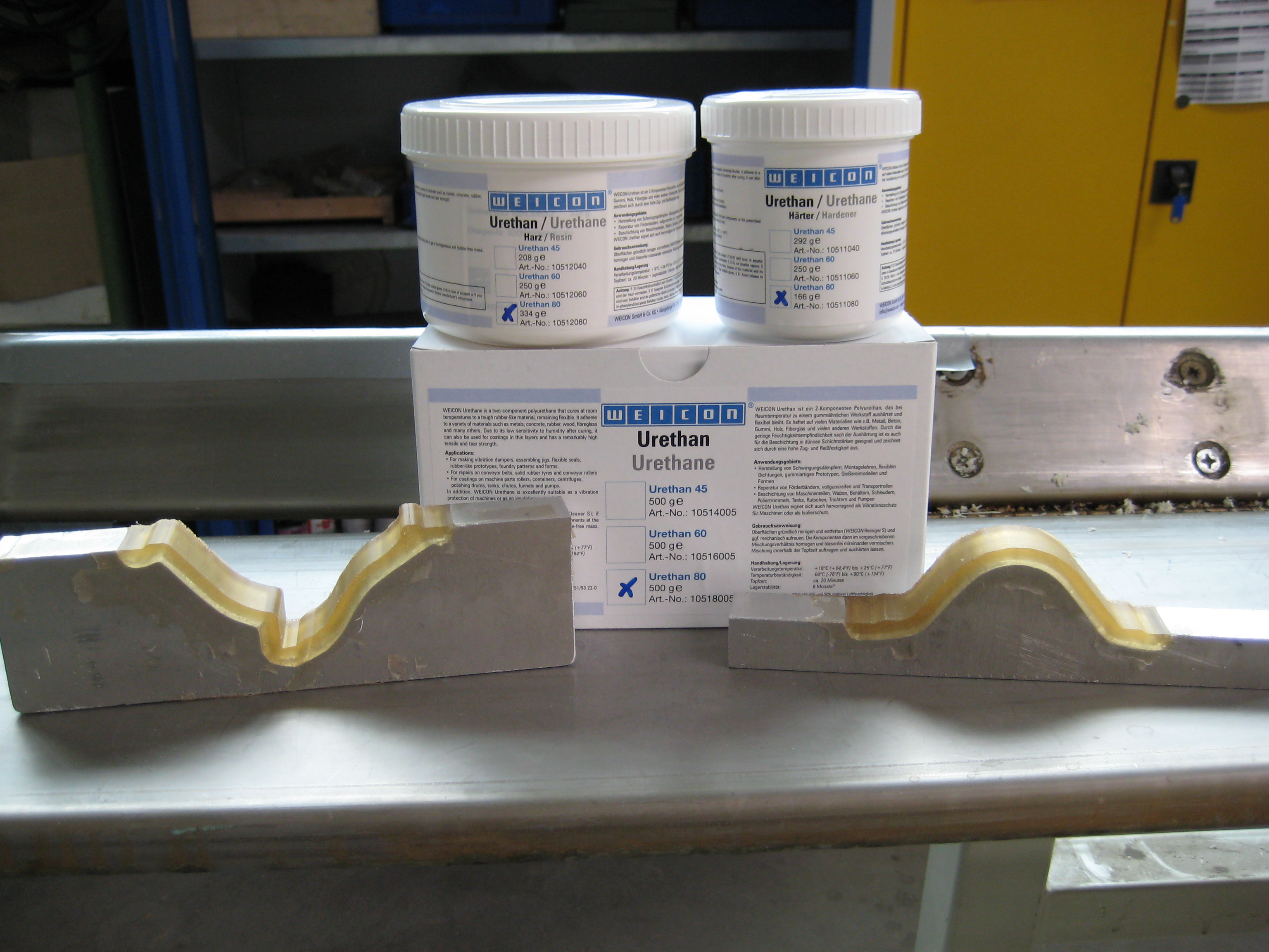 WEICON Urethanen zijn 2-componenten polyurethanen die bij kamertemperatuur uitharden tot een rubberachtig materiaal en flexibel blijven tot -60°C (-76°F). WEICON Urethanen hechten op een breed scala aan materialen, zoals metaal, beton, rubber, hout, glasvezel en vele andere materialen. Ze kunnen ook worden gebruikt als flexibele coatings in combinatie met WEICON Plastic Steel Systems. Door de lage gevoeligheid voor vocht is het ook geschikt voor coatings in dunne lagen. WEICON Urethaan wordt ook gekenmerkt door een hoge trek- en scheursterkte.
