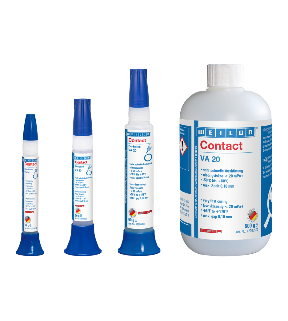 WEICON Contact VA 20 is geschikt voor het verlijmen van rubber en kunststoffen en ook voor het nauwkeurig aanbrengen van metaal/kunststofverbindingen. Contact VA 20 kan op veel gebieden in de industrie worden gebruikt.