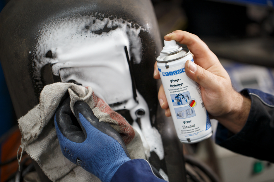 WEICON Vizierreiniger is een speciale reiniger voor het reinigen en onderhouden van gevoelige kunststof- en glasoppervlakken, is antistatisch en antireflecterend, vermindert schitteringen en verbetert het zicht. Verwijdert veilig en streeploos verontreinigingen door insecten, vuil, stof, vet en nicotine. WEICON Vizierreiniger kan op allerlei soorten vizieren, lasmaskers en lasbeschermingsbrillen, gezichtsbescherming en veiligheidsbrillen, kunststof behuizingen op CNC-machines, printers, scanners, etc. en op alle andere kunststof- en glasoppervlakken worden gebruikt.