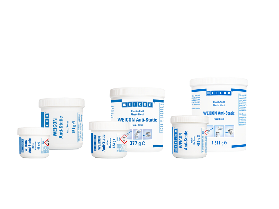 WEICON Anti-Static is een vloeibaar, antistatisch 2-componenten epoxyharssysteem met een hoog gehalte aan fijne minerale vulstoffen. Het wordt gebruikt om oppervlakken te beschermen tegen slijtage en corrosie. Door de combinatie van zeer sterke deeltjes met een viscoplastische polymeermatrix biedt het systeem een hoog niveau van slijtagebescherming. Het heeft een goede chemische weerstand en een hoge slijtvastheid. De coating hecht zeer goed, zelfs onder trillingen en rek op een groot aantal verschillende oppervlakken en is bestand tegen weglopen. Het slijtbeschermingssysteem is teer- en oplosmiddelvrij en hardt vrijwel krimpvrij uit. Anti-Static is geschikt voor het coaten van allerlei onderdelen, zoals rollen, pompen, glijgoten, transportbanden, hefschroeven, separatoren, trechters, propellers, ventilatoren en warmtewisselaars. WEICON Anti-Static is geschikt in combinatie met een van de andere WEICON kunststof-staaltypes voor een systeemopbouw als antistatische oppervlakteafwerking.