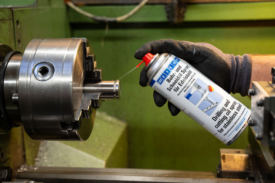 WEICON Boor- en snijolie spray voor RVS is een High-Performance smeermiddel voor zowel niet-verspanende als verspanende metaalbewerking. Het reduceert slijtage aan werkstukken en gereedschap. Het reduceert de wrijving en de warmteontwikkeling op metalen onderdelen. De transparante speciale olie verlengt de standtijd van snijgereedschap en boren. De drukbestendige boor- en snijolie voorkomt dankzij haar hoge hechting dat boorgereedschap wegglijdt en beschermt oppervlakken tegen beschadiging. Het verhoogt de efficiëntie en nauwkeurigheid van het snijgereedschap en maakt optimale resultaten mogelijk. Het is blijvend hittebestendig tot +200 °C. Het kan in de metaalbewerking worden gebruikt voor alle boor- en snijbewerkingen, zoals boren, draaien, zagen, frezen, ruimen, tappen of ponsen. De siliconenvrije spray is geschikt voor de bewerking van roestvast staal, alle staalsoorten, koper, aluminium, titanium, messing en gietijzer. De boor- en snijolie kan worden gebruikt in de metaalbewerking en in vele andere industriële toepassingsgebieden.