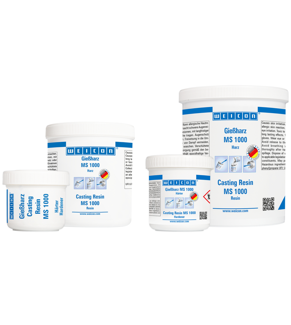 WEICON Giethars MS 1000 is geschikt voor veel verschillende toepassingen, zoals het inkapselen van elektronische onderdelen. Het kan met verschillende vulstoffen (poedervormig, vezels, weefsel)worden gevuld om bijv. de productie van opvulmassa’s met hoge vullingsgraad mogelijk te maken. De giethars kan in de electro-industrie, machinebouw en vele andere gebieden worden toegepast.