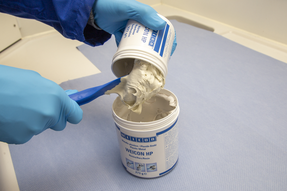 WEICON HP is een 2-componenten epoxyharssysteem met langere uithardingstijd, enorme slagvastheid, hoge rest-elasticiteit en slijtvastheid. Vanwege zijn hoge buigzaamheid en de pasteuze toestand van deze epoxyhars kan WEICON HP voor reparaties, als slijtagebescherming en als voering voor zwaar belaste machines toegepast worden. De lijm biedt een bijzonder goede hechting op verschillende materialen, ook op natte en vochtige oppervlakken of onder water.