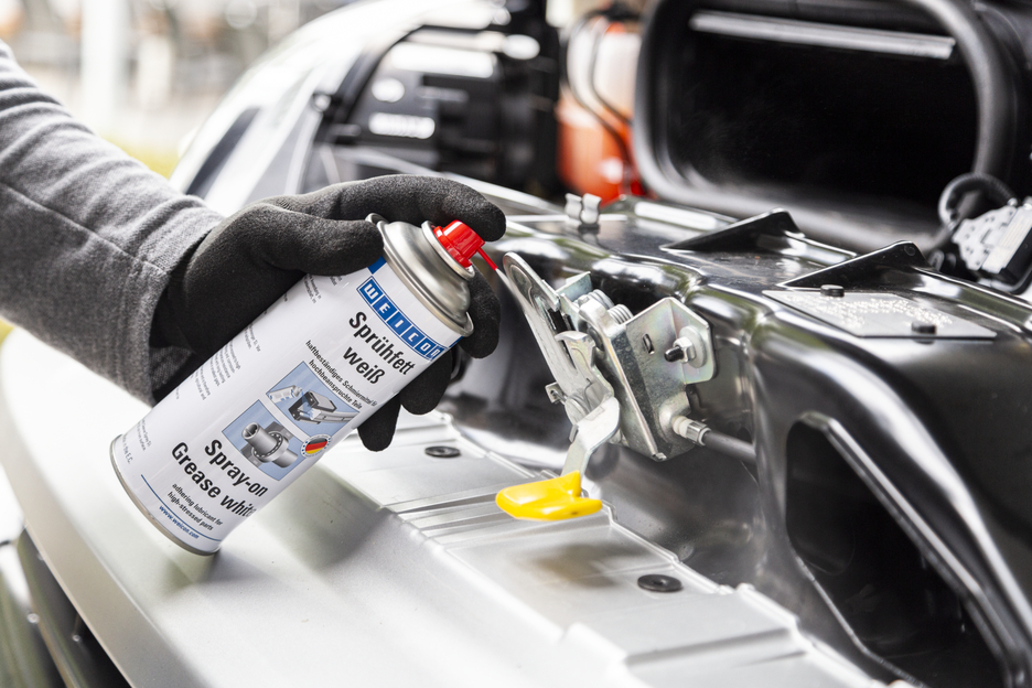 WEICON White-Grease Spray is een allround spuitvet voor hoog belaste delen, met een uitstekende hechting en een zeer goede verouderings- en drukbestendigheid. Door de toevoeging van slijtage- en corrosie beschermende additieven wordt de temperatuurstabiliteit van -20 tot +150 °C (-4 tot +302 °F), wordt een gegarandeerde lange levensduur bereikt. In vergelijking met transparante producten is hier te allen tijde zichtcontrole mogelijk. WEICON White-Grease Spray kan worden gebruikt voor langdurige smering van assen en tandwielen, rol- en kogellagers, scharnieren en verbindingen en allerlei soorten koppelingen.