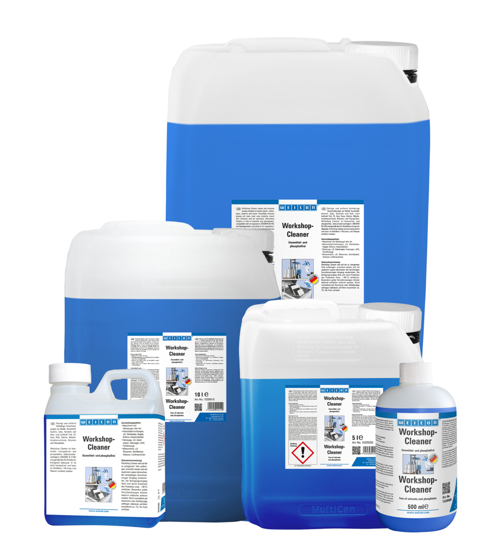 WEICON Workshop Cleaner reinigt en ontvet alle metalen, kunststoffen, rubbers, glas, keramiek en hout. Weekt krachtig, vet, olie, hars, roet, was, nicotine, vervuiling door instecten, bitumen en teerspuiten los. Workshop Cleaner is oplosmiddel-, emulgatoren-, en fosfaatvrij, verdraagt olieafscheiders (ÖNORM B 5105) en is conform de EU-richtlijnen biologisch afbreekbaar. Hij is hoog geconcentreerd en kan in verhouding 1:40 (max.) met water worden verdund. Het bevat geselecteerde schuimarme tensiden en kan naast het handmatig reinigen ook gebruikt worden bij het reinigen met hogedrukreinigers, deeltjeswasmachines en spuitapparaten (bijv. Handpompsproeier WPS 1500).