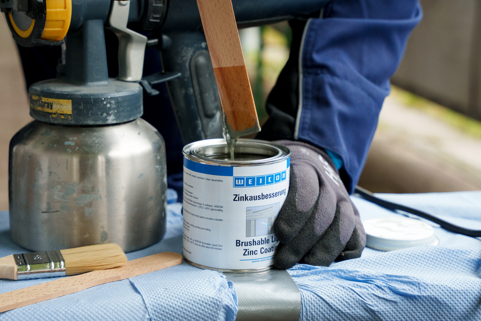 WEICON Zink Coating is een actieve corrosiebescherming voor alle metalen oppervlakken die qua kleur op thermisch verzinkt lijkt. Bij WEICON Zink Coating leggen plaatjesvormige metaalpigmenten (flakes) zich parallel ten opzichte van het oppervlak in meerdere, ruimtelijk verspringende lagen op de ondergrond (dakpaneffect). Ook bij een dun aangebrachte laag wordt op deze wijze een hoge corrosiebescherming bewerkstelligd. Daarmee wordt voldaan aan de eisen zoals gesteld in DIN EN ISO 1461 Daardoor wordt het oppervlak langer tegen binnendringend vocht beschermd. In combinatie met de gelijktijdige elektrochemische werking wordt een optimale corrosiebescherming bereikt.